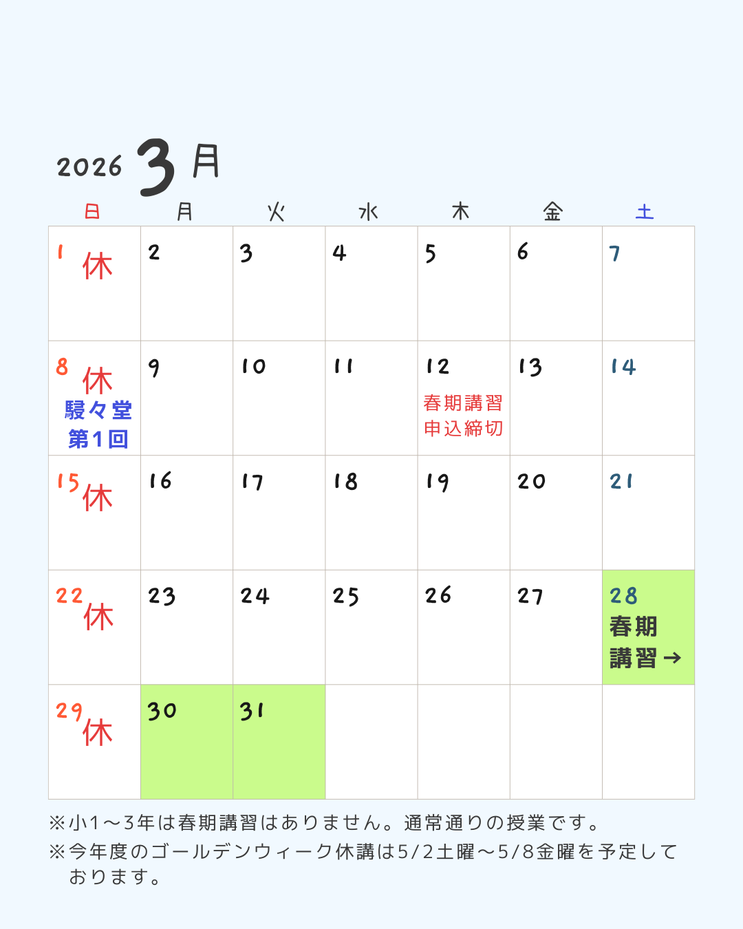 3月28日(土)~ 4月10日(金) 春期講習