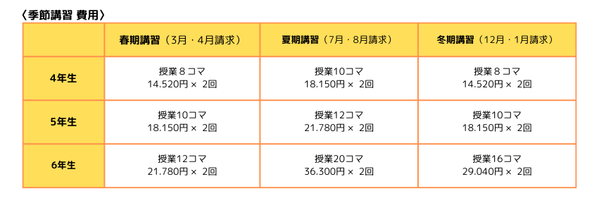 ▶季節講習(春期・夏期・冬期講習)はすべて4科目必修です。