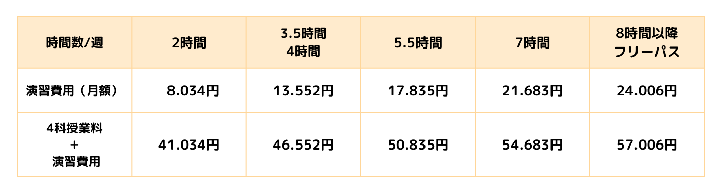 春期・冬期:演習2H 3.300円 夏期:演習5H 8.250円